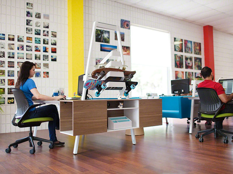 Ни одна чашка кофе с ароматом свежемолотого кофе не заменит отсутствие беспорядка на рабочем столе, особенно в начале рабочего дня. Для организации вещей на столе мы предлагаем много решений: полки, ящики для хранения, подобно тем которые используются в шведском офисе фирмы Skype, разработанные компанией PS Artitekture.